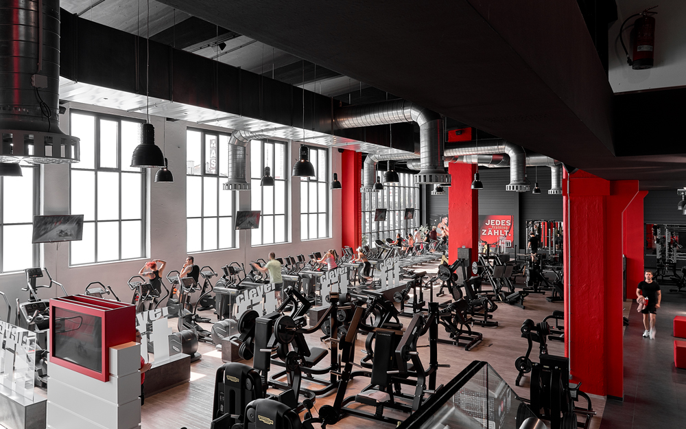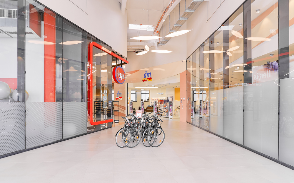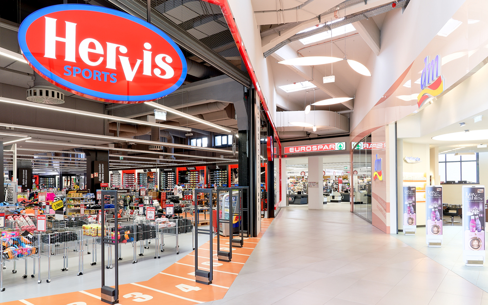 Installation eines Einkaufscenters mit Fitnessstudio